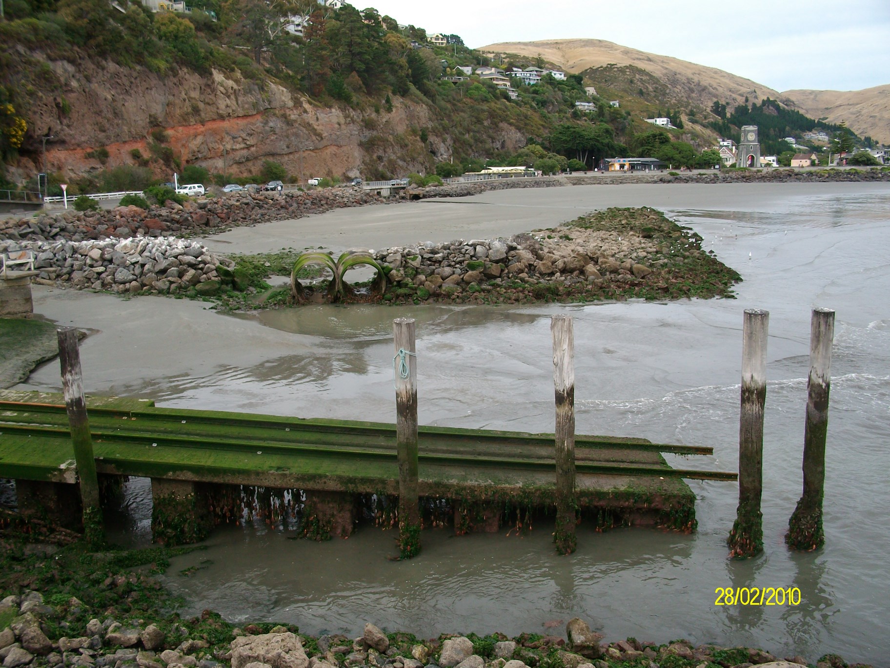 These photos show the dramatic infill of rock over recent years, from 2010 when there was a decent gap under the concrete slipway, to the present day where the rock is coming over the top of the ramp.